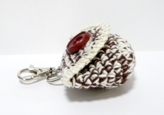 Deep Brown with Cream Crocheted Tiny Pouch for coins/keychain holder